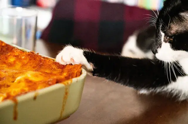 “Never attempt to cut out the stain,” Romanet said. “If the stain (like pasta sauce) contains onions or garlic, do not allow your cat to clean itself due to the potential for toxicity.