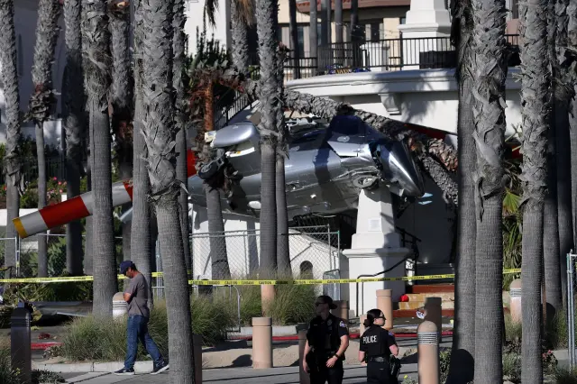A helicopter linked to the event crashed around 2 p.m. Saturday in a parking lot along the Pacific Coast Highway, according to the Huntington Beach Police Department. Emergency crews arrived at the scene between Twin Dolphins Drive and Beach Boulevard, where the helicopter had come to rest on a pedestrian staircase near the Waterfront Beach Resort. Five people—including two onboard and three on the ground—were transported to local hospitals. The severity of their injuries was not immediately disclosed.