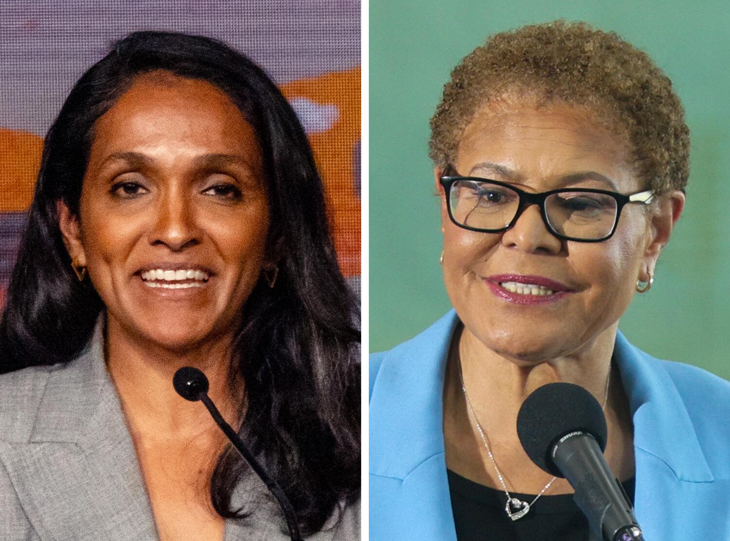 In L.A. mayor’s race, controversial poll shows Nithya Raman ahead of Karen Bass