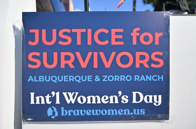 Speakers included family members of survivor Virginia Giuffre, Rep. Teresa Leger Fernández, New Mexico State Senator Linda Lopez, and indigenous and faith-based organizers. Women’s March Executive Director Rachel O’Leary Carmona read a speech authored by Epstein survivor Rachel Benavidez.