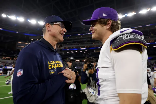Following the game, attention shifted to the postgame interaction between Vikings QB J.J. McCarthy, who remains sidelined with an ankle injury, and Chargers head coach Jim Harbaugh.