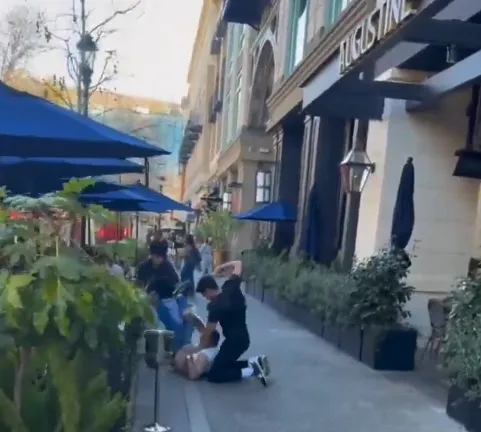 Klein said the victims had been speaking Hebrew at the time. Video shows the men in a patio area in front of Augustine — a restaurant along Santana Row — when the attack occurred. The three suspects then fled as horrified witnesses looked on, he said.