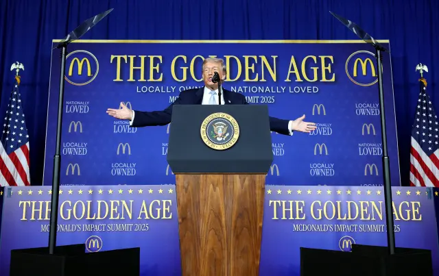 On Monday, the president told a summit of McDonald’s franchise owners that “this is also the golden age of America, because we are doing better than we’ve ever done as a country. Prices are coming down.”