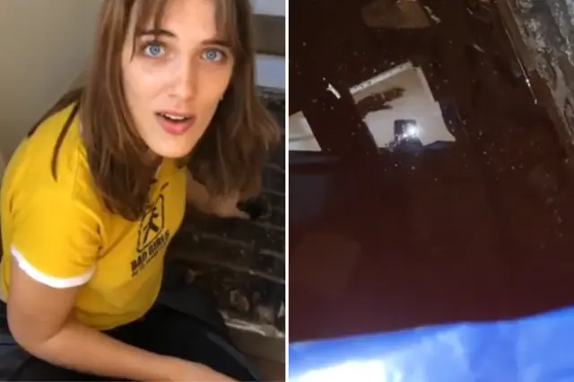 In a video on TikTok with more than 600,000 views, Sims shared the moment they pulled back the decaying flooring to expose a dark water pool beneath. In the text overlay she joked: “Wait until you see my swimming pool.”